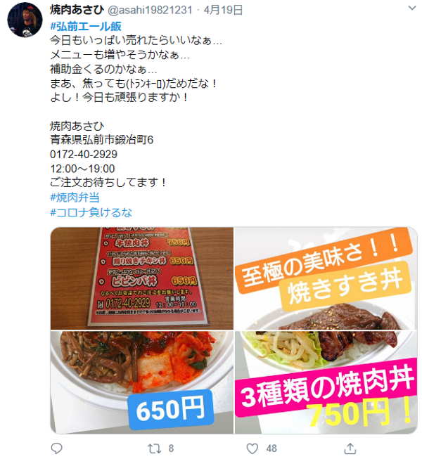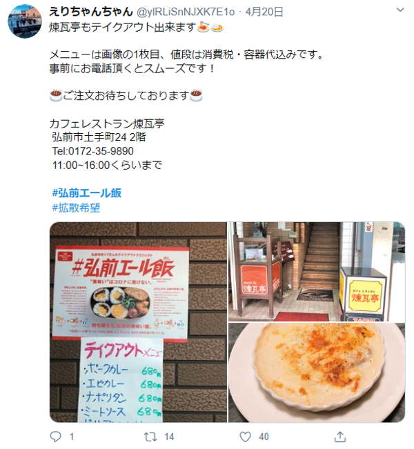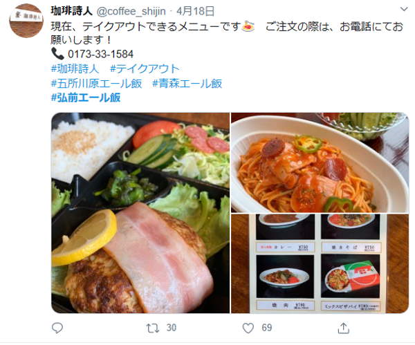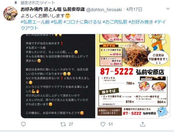 掲載は拡散・弘前の飲食店の応援のために載せていますが、「SNSの名前を消して欲しい」「うちの店を勝手に載せないでほしい」など要望がありましたら、下のほうにあるコメントに書き込みしてください。対応いたします。